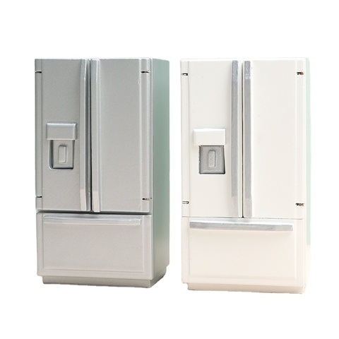1/12 Scale Dollhouse 소형 furnature 주방 냉장고 냉장고 나무 얼음 상자 더블 도어 냉장고